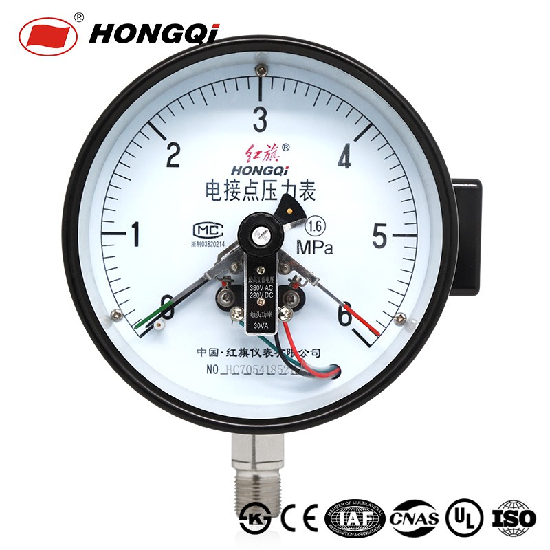 گیج فشار تماس الکتریکی از یک سیستم اندازه گیری، یک سیستم نشانگر، یک دستگاه تماس الکتریکی با کمک مغناطیسی، یک پوشش، یک دستگاه تنظیم و یک جعبه اتصال (صندلی دوشاخه) تشکیل شده است. گیج های فشار تماس الکتریکی عمومی برای اندازه گیری فشار مثبت و منفی رسانه های گاز و مایعی که برای مس و آلیاژهای مس خورنده نیستند استفاده می شود. فشارسنج های تماس الکتریکی از جنس استنلس استیل برای اندازه گیری فشارهای مثبت و منفی رسانه های گاز و مایع که برای فولاد ضد زنگ خورنده نیستند استفاده می شود. هنگامی که فشار به مقدار از پیش تعیین شده می رسد، یک سیگنال ارسال می شود و مدار کنترل برای دستیابی به هدف کنترل خودکار زنگ هشدار متصل می شود.