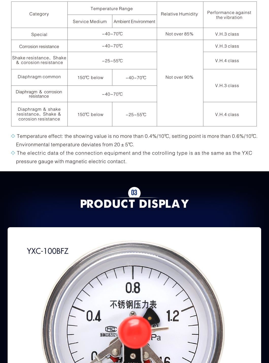 YXC{0}}BFZT ساخته شده توسط Hongqi Instrument. فشار سنج تماس الکتریکی لرزه ای حد پایین و حد بالاتر
