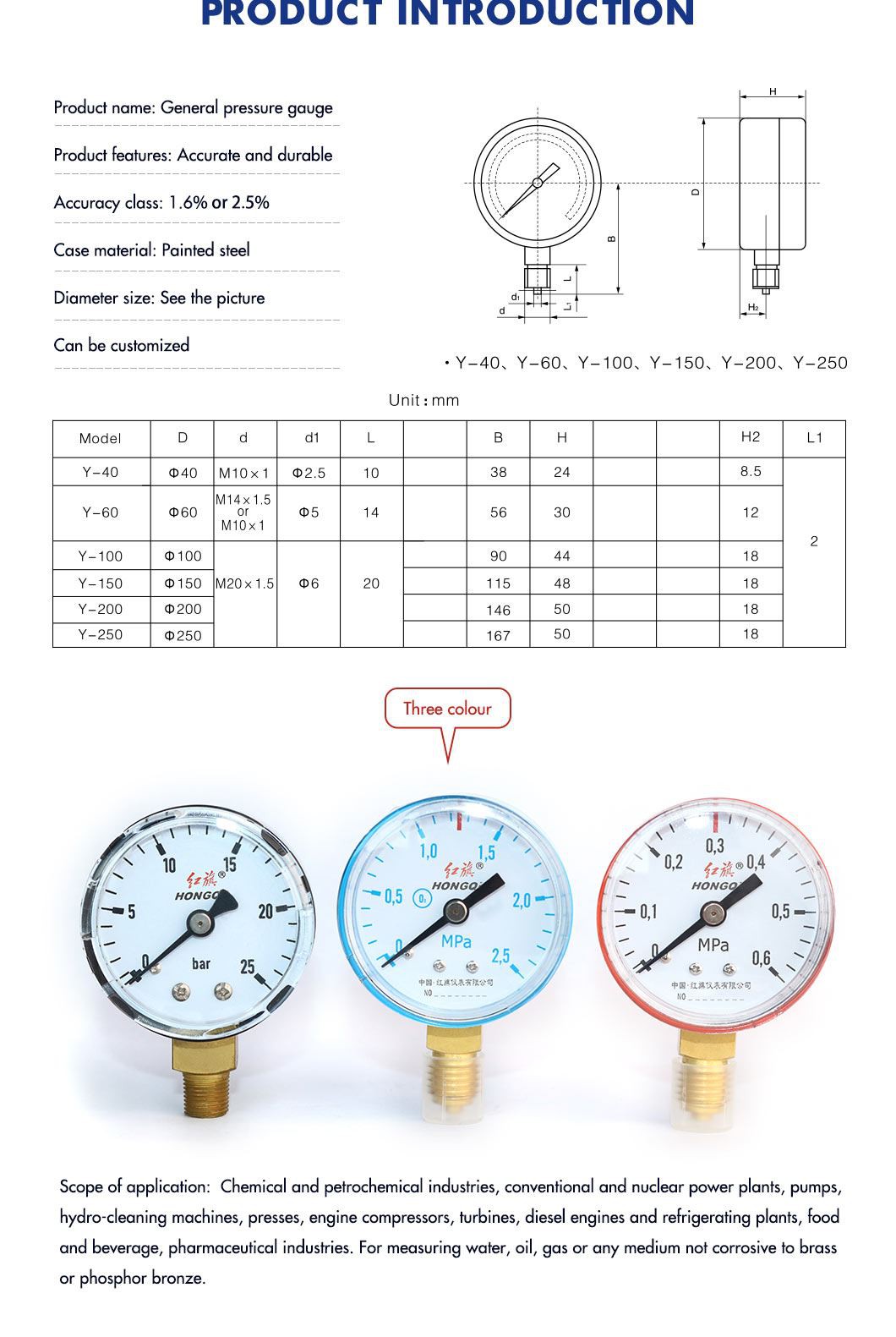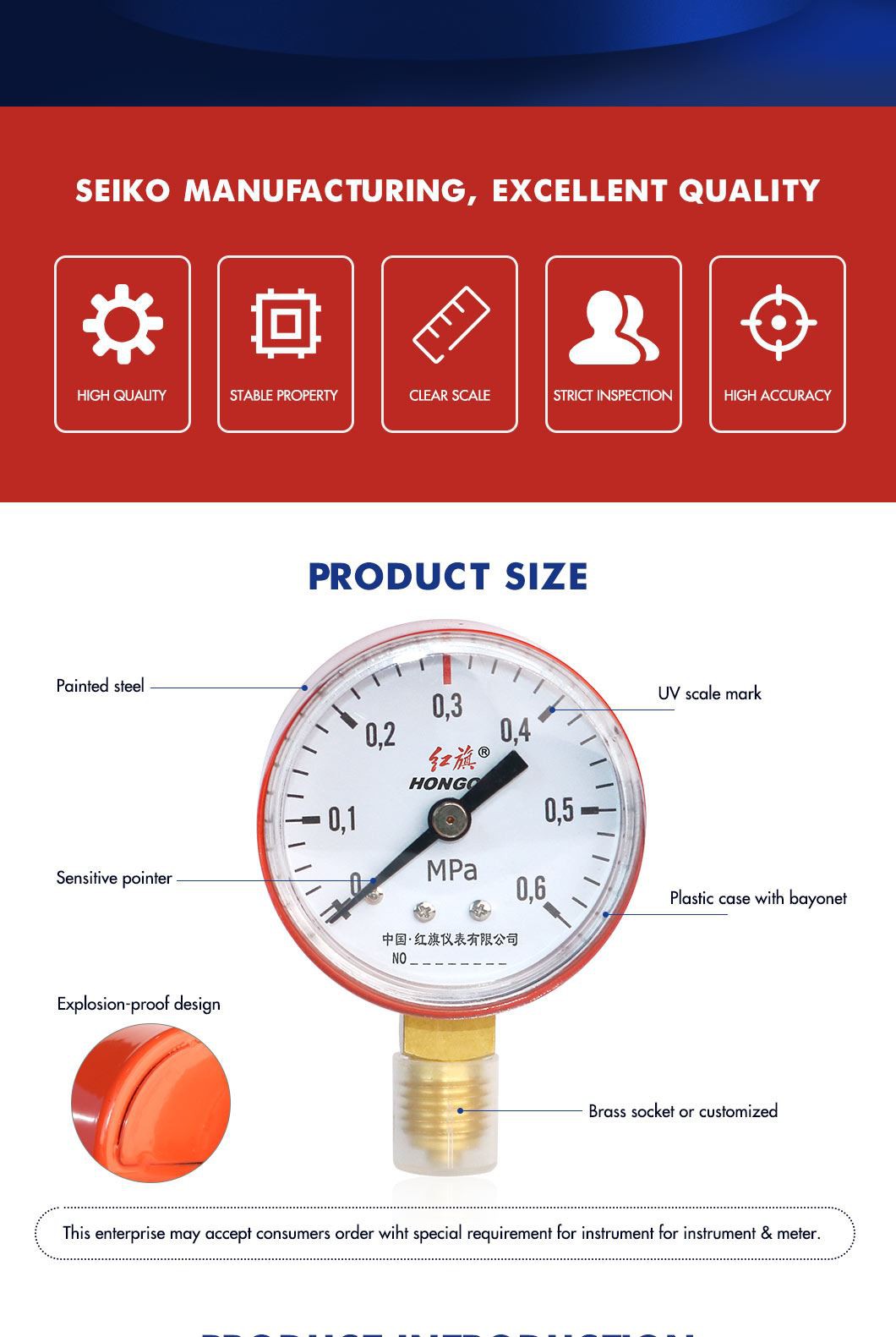 Hongqi Instrument Co., Ltd تولید کننده حرفه ای انواع ابزار اندازه گیری با کیفیت بالا است. خطوط اصلی تولید ما شامل گیج خشک، فشارسنج پر مایع، فشار سنج ویژه، گیج کپسول، گیج فشار پر از فولاد ضد زنگ، دماسنج، لوازم جانبی می باشد. چشم انداز و استراتژی ما تبدیل شدن به تولید کننده پیشرو ابزار صنعتی برای اندازه گیری فشار سنج و دما است. ما با ارائه خط تولید متنوع و با کیفیت بالا، خدمات مشتری برتر و شبکه توزیع جهانی خود را از رقبا متمایز خواهیم کرد.