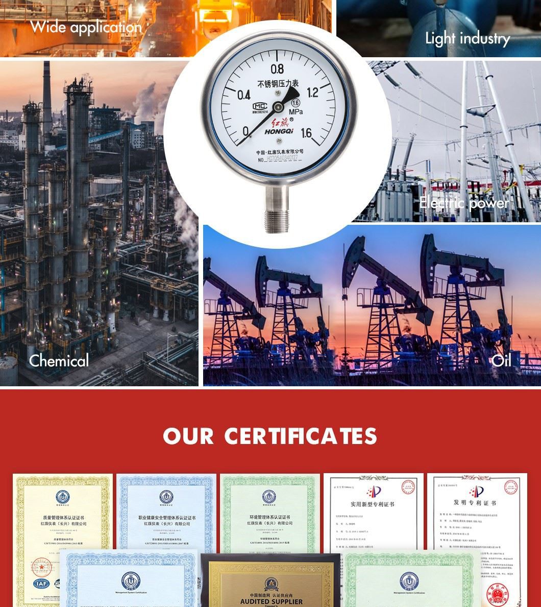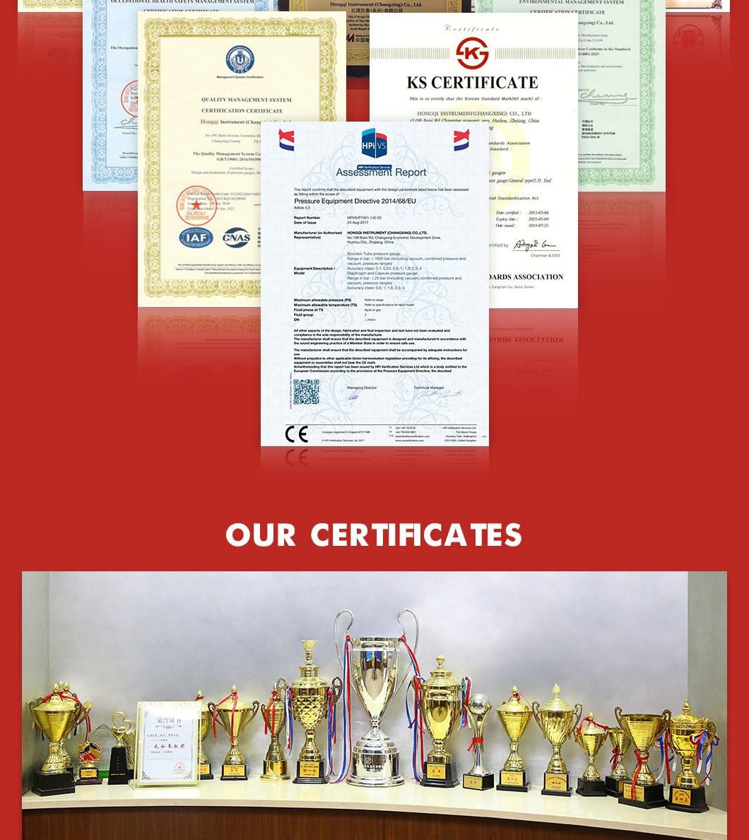 Hongqi Y-100bf(4") با کیفیت خوب به طور گسترده در صنعت استفاده می شود گیج فشار همه فولاد ضد زنگ OEM